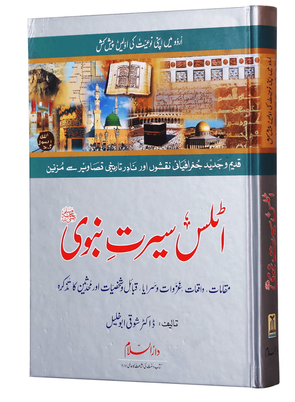 پیغمبر آخرالزماں جناب محمد رسول اللہ صلی اللہ علیہ وسلم کی نبوت ورسالت تو قیامت تک کے تمام انسانوں کے لیے ہے لیکن یہ بھی حقیقت ہے کہ آپ صلی اللہ علیہ وسلم جزیرۃ العرب میں پیدا ہوئے۔مکہ مکرمہ میں پرورش پائی اور 53برس تک یہیں رہے بعد ازاں مدینہ منورہ کی جانب ہجرت فرمائی اور عمر عزیز کے 10 سال یہاں بسر کیے۔آپ صلی اللہ علیہ وسلم نے اس عرصے میں سفر بھی کیے،صفر میں بھی رہے،حالت امن میں بھی دن گزارے اور حالت جنگ میں بھی شب وروز بسر ہوئے۔اس تمام شرگزشت اور ریکارڈ کو سیرت نبوی علی صاحبہا الصلوۃ والسلام کا نام دیا جاتا ہے۔مختlف زبانوں میں سیرت نبوی پر بے شمار کتابیں موجود ہیں جو قارئین کے مطالعے میں رہتی ہیں تاہم ان میں ایک تشنگی کا احساس رہتا ہے کہ مقامات واماکن کا نقشہ کتابوں میں نہیں ہوتا جس سے جگہوں کا صحیح تعارف نہیں ہو پاتا۔اس کو مد نظر رکھتے ہوئے ڈاکٹر شوقی ابو خلیل نے زیر نظر اٹلس مرتب کی ہے جس میں سیرت کی وضاحت نقشوں سے کی گئی ہے ۔ان نقشوں میں تمام متعلقہ مقامات ،شہروں اور ان اطراف واکناف کی تفصیل سے جن کو آپ صلی اللہ علیہ وسلم نے اپنی تشریف فرمانی سے رونق بخشی یا جن کی طرف آپ نے قصدفرمایا۔اصل کتاب عربی میں تھی،جسے معروف اشاعتی ادارے دارالسلام نے اردو قالب میں ڈھال کر اردو دان طبقے کے لیے بھی اس سے استفادہ کو آسان کر دیا ہے۔امید قارئین کے لیے یہ کتاب دلچسپ معلومات کا ذریعہ ہو گی