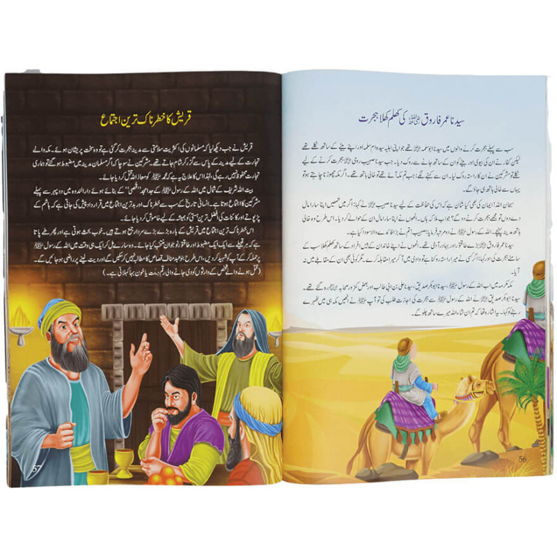 پیغمبر اسلام محمد مصطفی ﷺ کی سیرت پاک ہر مسلمان کی زندگی میں مشعل راہ ہے۔ اس کا مطالعہ بچوں، بڑوں اور نوجوانوں سب کے لیے مفید اور ناگزیر ہے ۔لیکن فی زمانہ بچوں کے لیے نبی کریم ﷺ کی سیرت کو آسان اور دلکش انداز میں پیش کرنے کی ضرورت ہے تا کہ وہ اسے دلچسپی اور شوق سے پڑھ سکیں ۔اس لیے ہم نے بچوں کے لیے سنہری سیرت کے منتخب واقعات دلچسپ اور دیدہ زیب پیراۓ میں بیان کرنے کی کوشش کی ہے تا کہ وہ آپ ﷺ کی پاکیزہ سیرت سے آگاہ ہو کر اسلامی اخلاق وکردارا پناسکیں اور مروجہ لٹریچر کی آلودگی اور قباحتوں سے بچے رہیں جو انھیں افسانوی اور دیو مالائی کہانیوں کی لت میں مبتلا کر کے اسلامی اخلاق سے آراستہ نہیں ہونے دیتا۔ اسی ضرورت کے پیش نظر ہم نے اس پاکیزہ مجموعے کو شرعی حدود کا خیال رکھتے ہوۓ چہار رنگ تصویروں اور خاکوں سے مزین کیا ہے مگر اللہ کے نبی سلام یا کسی صحابی کو تصویر یا خاکے میں نہیں دکھایا تا کہ بچے تصاویر کے ذریعے سے واقعات کو سمجھیں اور اللہ کے رسول سلام کی سیرت سے واقف ہوسکیں۔