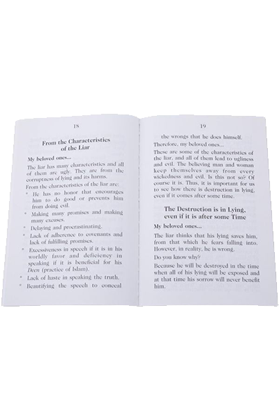 After reading this book, we come to hate lying and those who practice lying. Also, every one of us will increase in Faith by adhering to truthfulness in all the affairs of this life, with our parents, our brothers, our neighbors, our friends, and with all of mankind. Thus, we must know about the danger of lying and the punishment of the liars so that we may be of the people of truth, and with those who practice truthfulness.