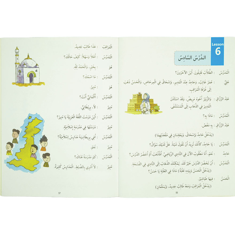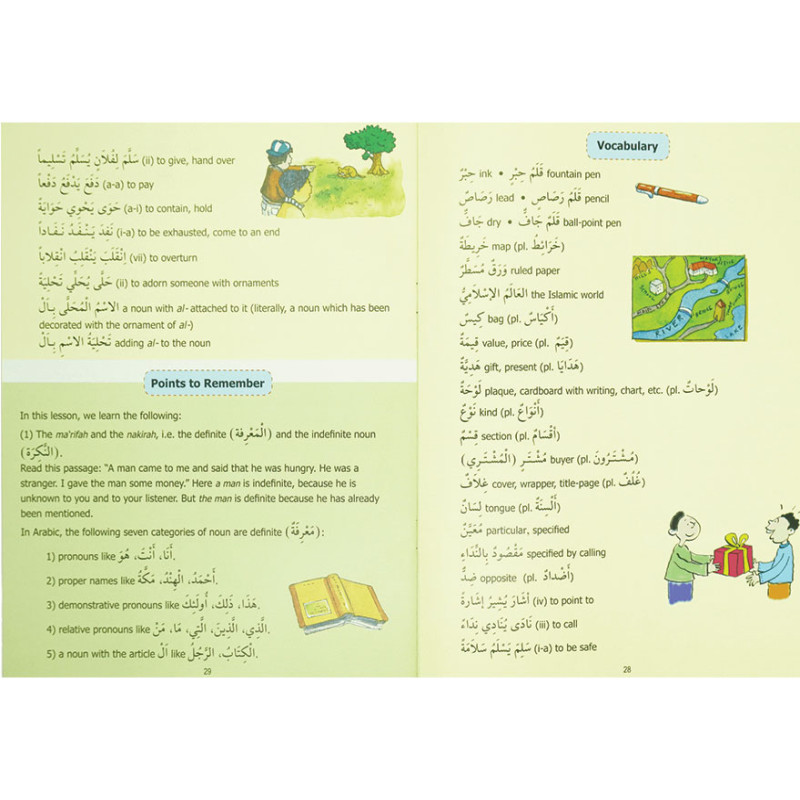 Madinah Arabic Reader: Arabic Course as taught at the Islamic University Madinah’ is the children’s version of Dr. V. Abdur Rahim’s world-renowned Arabic Course: ‘Duruus al-Lughah al-Arabiyyah li Ghayr al-Naatiqiina. Through simple, methodical steps, lexical and grammatical elements are taught using bright colors, vibrant design, full-filled artwork, and illustrations. Copious, creative exercises test all areas of the young learner’s grammar, language skills and comprehension.