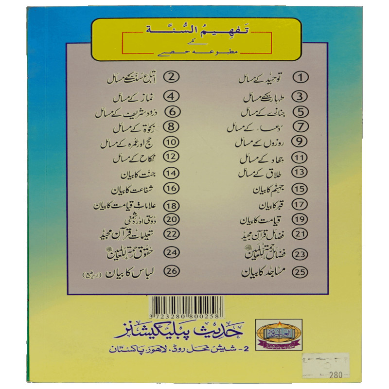 اس کتاب میں مساجد کی تعمیر کا مقصد، مساجد کی تعمیر کا ثواب، معاشرے میں مساجد کی اہمیت، مساجد کی فضیلت، مسجد حرام، مسجد نبوی اور مسجد اقصیٰ کی فضیلت، مسجد قبا کی فضیلت، مساجد کی صفائی کرنے کی فضیلت، مساجد میں جائز امور اور ناجائز امور احادیث صحیحہ کی روشنی میں بیان کیے گئے ہیں۔