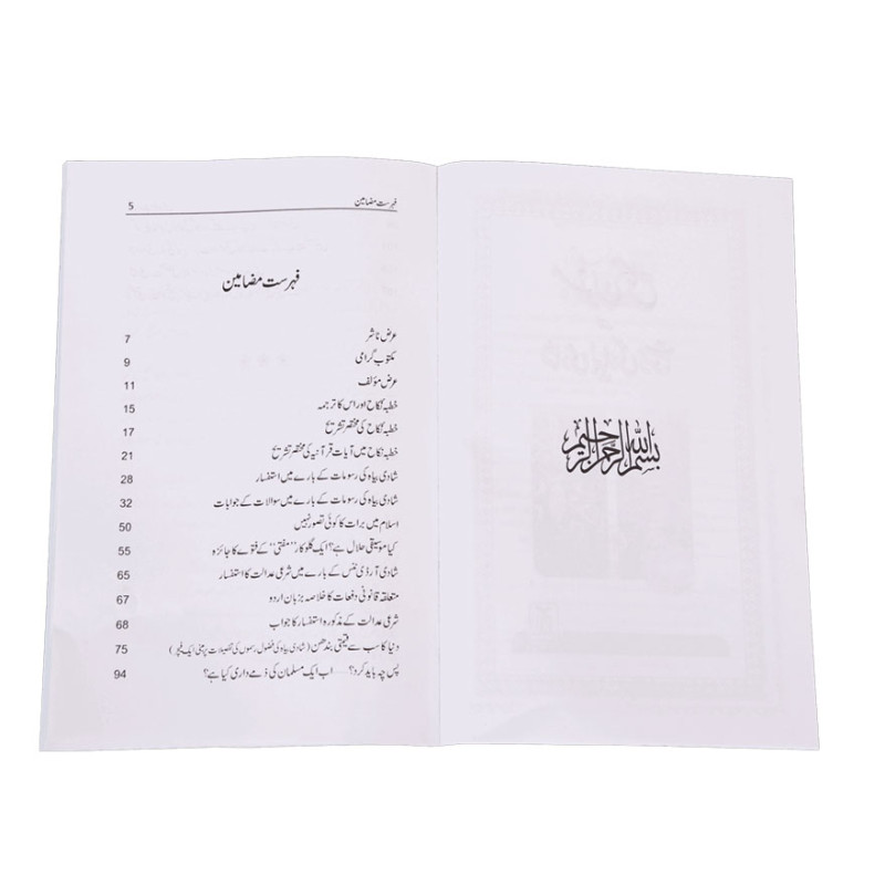 اسلامی معاشرت میں نکاح جس قدر سادہ تقریب تھی، امتدادِ زمانہ کے ساتھ یہ اسی قدر تکلفات سے بھرپور اور بد اخلاقی کا گہوارہ بنتی چلی جا رہی ہے۔ اسلام میں نکاح کے متعلق کیا ہی عمدہ احکامات اور تعلیمات ہیں لیکن ہم نے اپنی جہالت، جذبہ نمائش دولت اور رسوم و رواج کی پرستش کے باعث اس کی شکل بگاڑ دی ہے۔ اس موضوع پر معروف عالم دین اور محقق شہیر حافظ صلاح الدینیوسف نے مختلف اوقات میں جو مضامین لکھے یا استفسارات کے جواب تحریر کیے، انھیں اب ایک خاص علمی ترتیب سے اس کتاب میں جمع کر دیا گیا ہے۔ ان مضامین کا مطالعہ جہاں ایک طرف ہمیں سنت کے مطابق شادی اور نکاح کے مسائل سے آگاہ کرے گا وہاں ہمیں اس معاشرتی اور جاہلانہ رسوم سے چھٹکارے کا راستہ بھی دکھائے گا۔ اس اعتبار سے یہ کتاب معاشرے کے ہر فرد کی ضرورت اور اہل حکومت کی بے حسی پر ایک تازیانہ ہے۔ کتاب کے آخر میں گھریلو ماحول اور ازدواجی زندگی پرمسرت اور خوش گوار بنانے کے لیے چند اصول اور نصیحتیں کی گئی ہیں اس کے علاوہ شادی سے متعلق چند ضروری اور مسنون دعائیں بھی کتاب کا حصہ ہیں