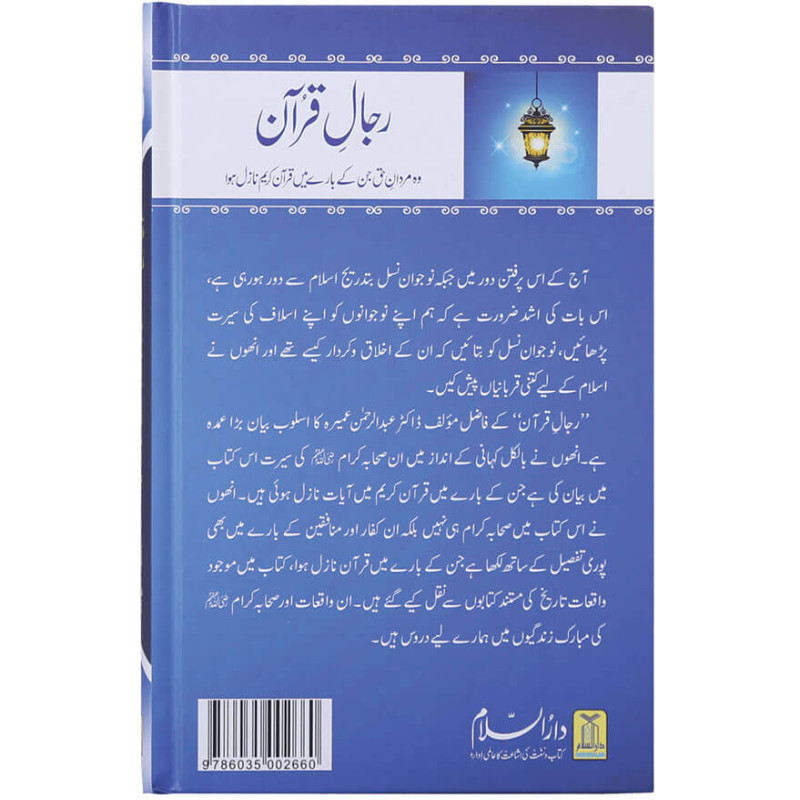آج کے اس پر فتن دور میں جبکہ نوجوان نسل بتدریج اسلام سے دور ہو رہی ہے ، اس بات کی اشد ضرورت ہے کہ ہم اپنے جوجوانوںکو اپنے اسلاف کی سیرت پڑھائیں، نوجوان نسل کو بتائیں کہ ان کہ اخلاق و کردار کیسے تھے اور انھوں نے اسلام کے لیے کتنی قربانیاں پیش کیں۔ `رجالِ قران` کے فاضل مولف ڈاکٹر عبدالرحمن عمیرہ کا اسلوب بیان بڑا عمدہ ہے۔ انھوں نے بلکل کہانی کے انداز میں ان صحابہ کرام کی سیرت اس کتاب میں بیان کی ہے جن کے بارے میں قران کریم میں آیات نازل ہوئی ہیں۔ انھوں نے اس کتاب میں صحابہ کرام ہی نہیں بلکہ ان کفار اور منافقین کے بارے میں بھی پوری تفصیل کے ساتھ لکھا ہے جن کے بارے میں قران نازل ہوا، کتاب میں موجودواقعات تاریخ کی مستند کتابوں سے نقل کیے گئے ہیں۔ ان واقعات اور صحابہ کرام کی مبارک زندگیوں میں ہمارے لیے نہایت قیمتی درس موجود ہیں۔