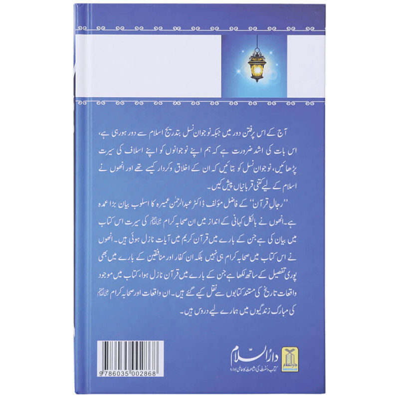 ہے ، اس بات کی اشد ضرورت ہے کہ ہم اپنے جوجوانوںکو اپنے اسلاف کی سیرت پڑھائیں، نوجوان نسل کو بتائیں کہ ان کہ اخلاق و کردار کیسے تھے اور انھوں نے اسلام کے لیے کتنی قربانیاں پیش کیں۔ `رجالِ قران` کے فاضل مولف ڈاکٹر عبدالرحمن عمیرہ کا اسلوب بیان بڑا عمدہ ہے۔ انھوں نے بلکل کہانی کے انداز میں ان صحابہ کرام کی سیرت اس کتاب میں بیان کی ہے جن کے بارے میں قران کریم میں آیات نازل ہوئی ہیں۔ انھوں نے اس کتاب میں صحابہ کرام ہی نہیں بلکہ ان کفار اور منافقین کے بارے میں بھی پوری تفصیل کے ساتھ لکھا ہے جن کے بارے میں قران نازل ہوا، کتاب میں موجودواقعات تاریخ کی مستند کتابوں سے نقل کیے گئے ہیں۔ ان واقعات اور صحابہ کرام کی مبارک زندگیوں میں ہمارے لیے نہایت قیمتی درس موجود ہیں۔