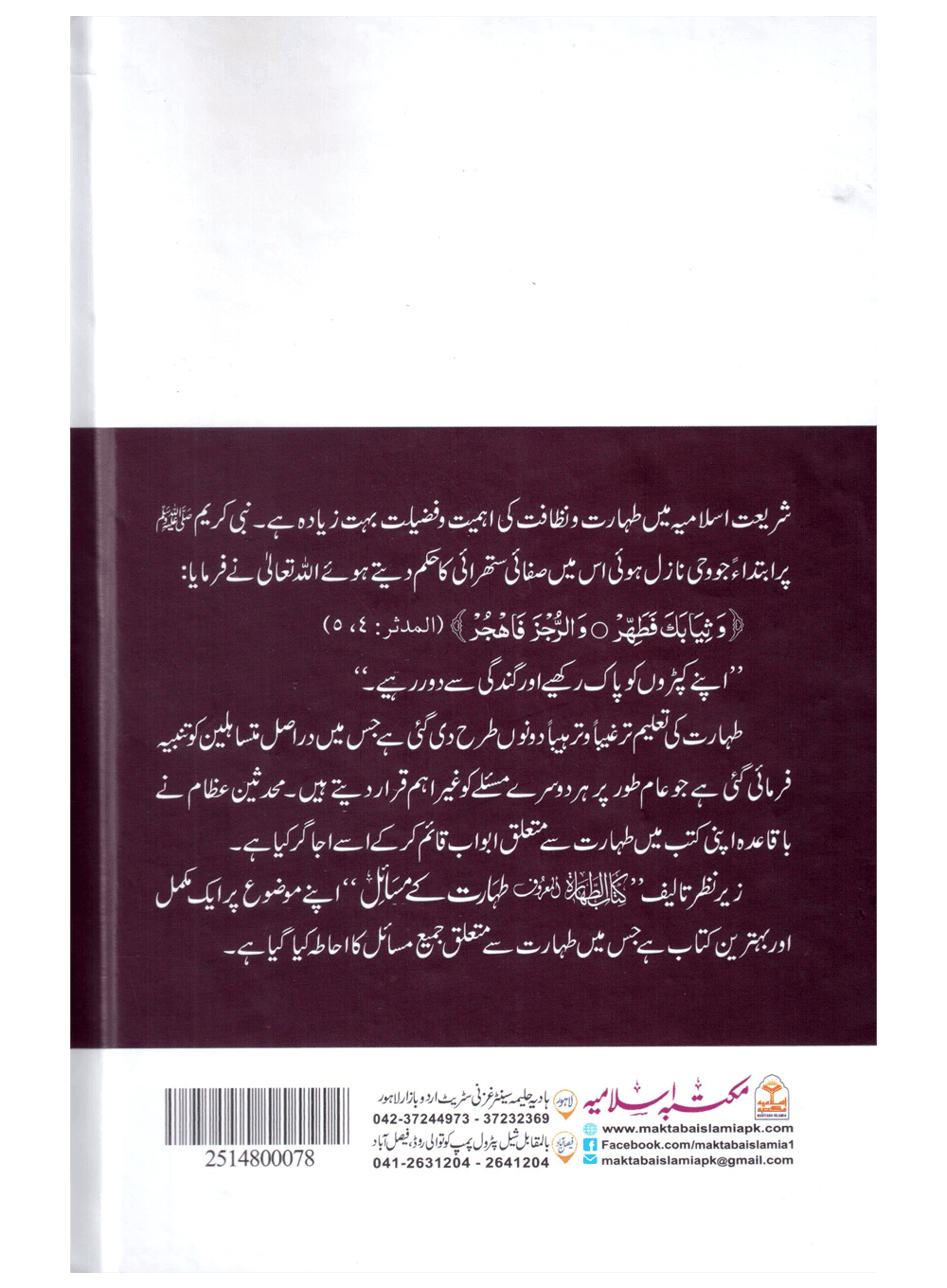 زیر نظر تالیف کتاب الطھارۃ المعروف طہارت کے مسائل اپنے موضوع پر ایک مکمل اور بہترین کتاب ہے جس میں طہارت سے متعلق جمیع مسائل کا احاطہ کیا گیا ہے۔ فقہ السنہ میں سے کتاب الطھارۃ اور کتاب الصلاۃ چونکہ مدارس کے نصاب میں شامل ہے، لہذا ہم نے علمائ و طلبا کی سہولت کے لیے ان دونوں کو علیحدہ سے چھاپنے کا بندوبست کیا ہے۔