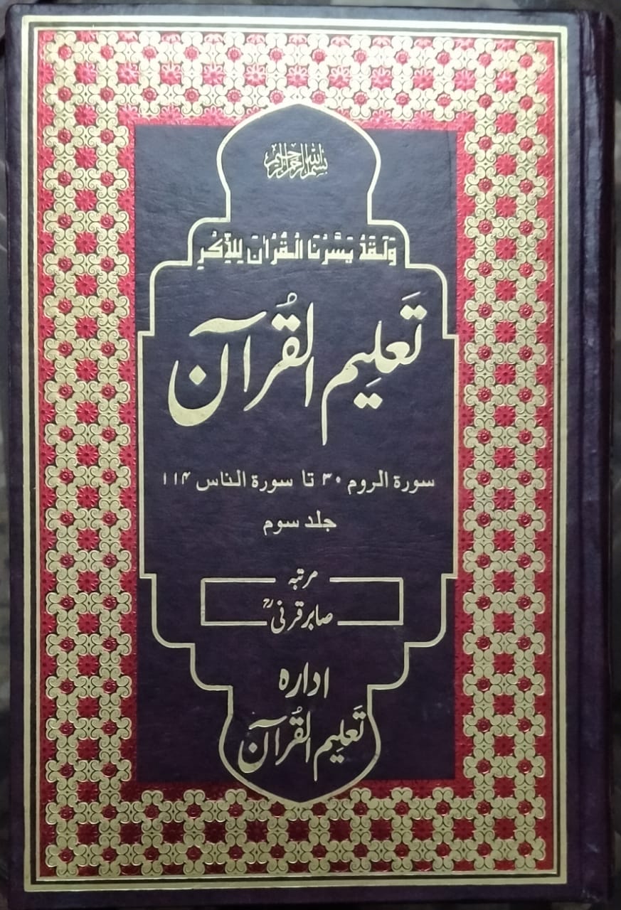 قرآن سیکھنا چاہتے ہیں اور ضروری تشریح و تفسیر پڑھنا چاہتے ہیں جس سے قرآن حکیم کا اصل مدعا سامنے آئے‘ بہترین رہنما ہے۔تعلیم القرآن مجلد کی خصوصیات:ہر جلد میں متن (جیسا کہ نمونے سے واضح ہے؛ ہر صفحہ پر لفظی و بامحاورۃترجمے کے ساتھ ساتھ جامع تشریح پر مبنی حواشی اور ضروری الفاظ کی عربی گرامر کی رو سے صرفی تشریح و ترجمہ) کے علاوہ شروع میں فہرست مضامین اور آخر میں تمام سورتوں کے مضامین کا خلاصہ و تشریح کا اعادہ تحریر کیا گیا ہے تاکہ قرآن کے مضامین کا عمود متعین رہے اور انہیں سمجھنے میں کسی قسم کی دقت نہ رہے۔ بامحاورۃ ترجمہ مولانا