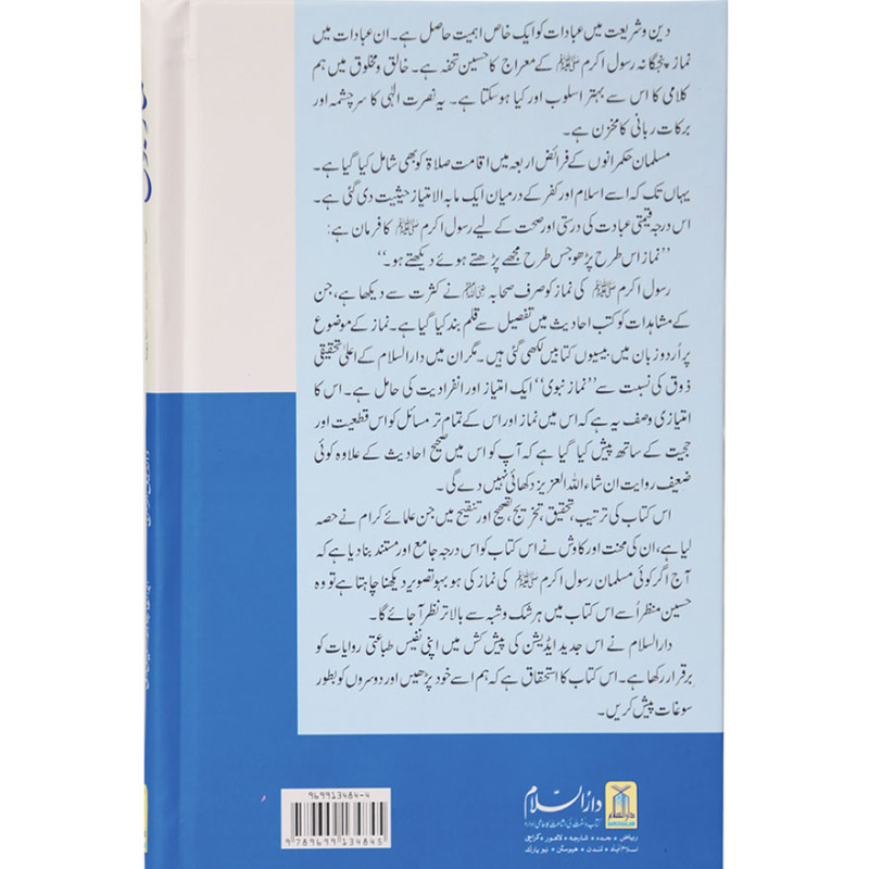 In religion and Shariah, prayers have special importance. The most important prayer is offering Salah five times a day which is a beautiful gift. There can be no other better way for creation to communicate with the creator. This is the way of pleasing Allah and getting blessings. It is the foremost duty and responsibility of rulers to implement the arrangement of Salah offering. It is also known to be the distinguishing feature between a Muslim and a Non-Muslim. Holy Prophet said(P.B.U.H) Offer Salah like you have seen me offering it. Companions of the Holy prophet have comprehensively observed Holy Prophet (P.B.U.H) offering Salah. Numerous books have been written on it in the light of Sunnah. Darussalam Namaz-e-Nabwi stands apart from all those due to authenticity and immense research. This book does not contain any hades that are not authentic. Many eminent scholars have contributed to writing this book and the book is the closest you can find to the mirror the exact way of Holy Prophet(P.B.U.H) offering Salah. The book demands to be read and gifted to others for the maximum benefit.