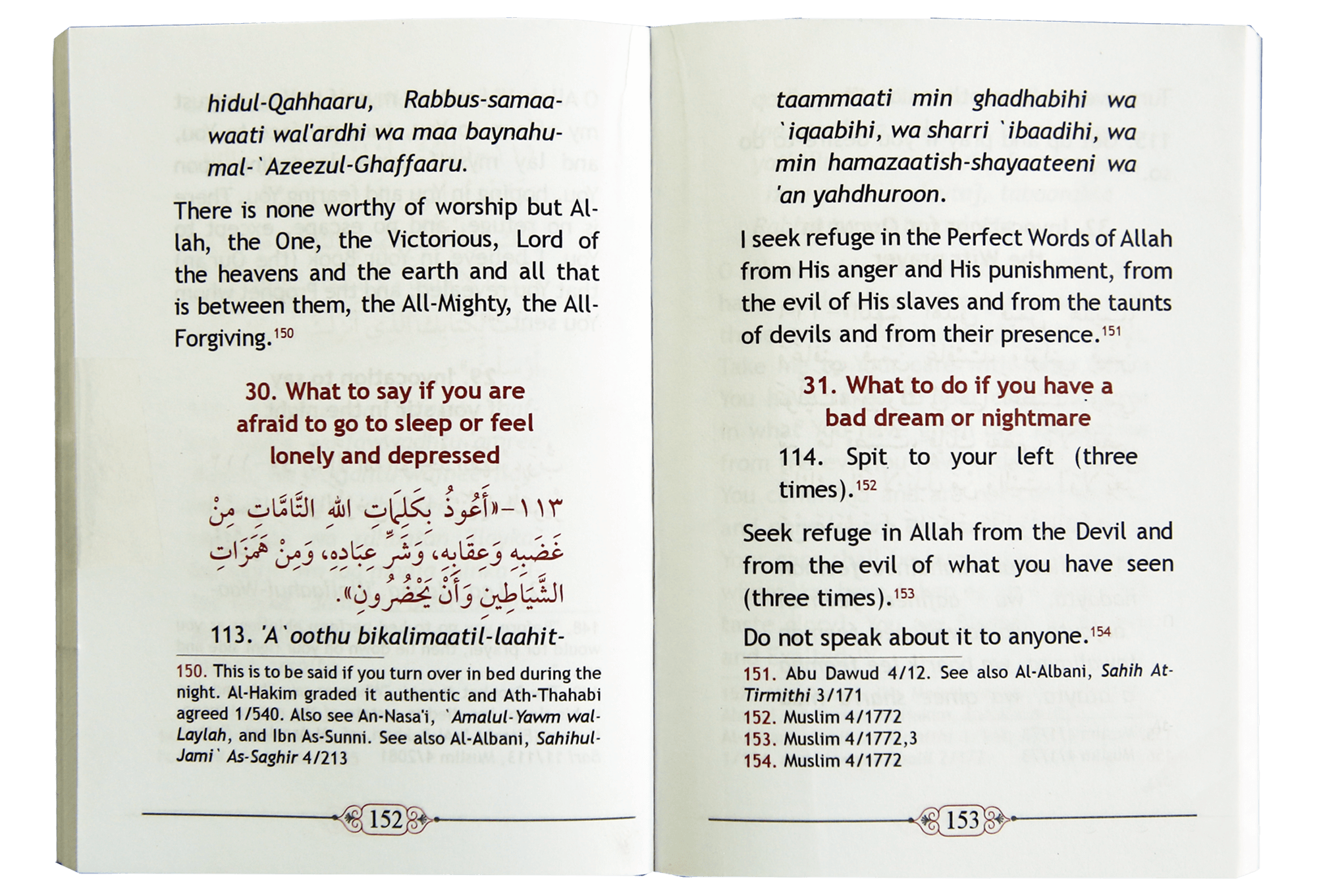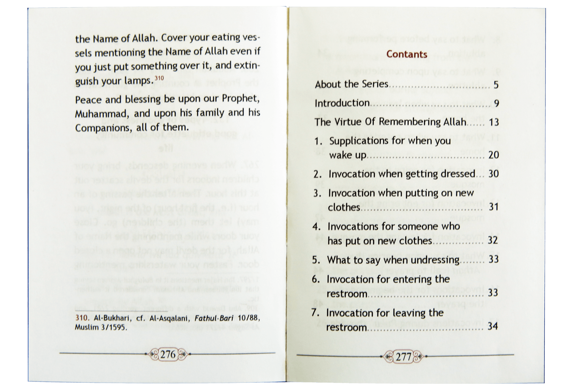Many people think that Islam is a religion but those who study it know that it’s more of a lifestyle! This is why following the teachings of Islam in our daily lives is important. The only thing that can perfect this is starting everything with a prayer. I mean every little thing we do should be done with a prayer. And if you agree with me on this, then you will surely love this book. It lists a prayer, an authentic one, for every action that you can think of. Be it waking up from your cozy bed, changing clothes, entering the washroom or exiting it, entering your house or exiting it, having relations with your spouse, marrying someone, buying a vehicle, riding a car, entering a city or village, and so many others. (I can’t even remember them all, you see, that’s why I keep this book with me) It is easy to carry in your pocket, so you can always have it with you. This book has helped me so much with my life and the prayers I read from it has visible effects. I can feel things around me changing and everything feels pleasant. Verily, Allah listens to our supplications and guides us to the right path. I pray that all Muslims may benefit from the verses of Allah and prophet Muhammad (PBUH