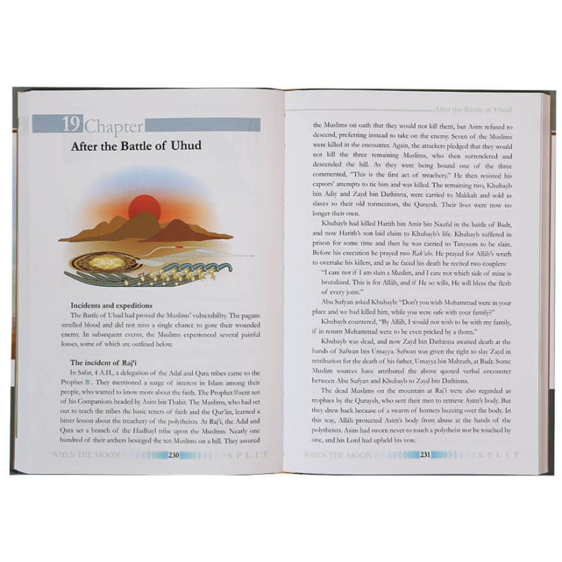 A beautifully presented hardback book containing colour photos. In depth factual information about the life and times of prophet Mohammed (pbuh). At the end of each chapter there are questions to help you refresh your memory about what you have just learned plus a section on lessons and morals. I love this book and highly recommend it.