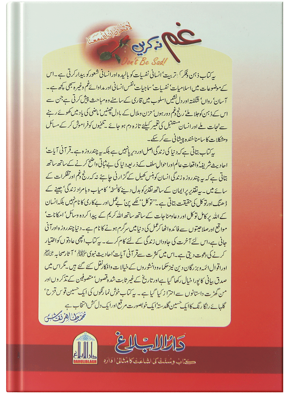 زیرِنظر کتاب گویا قرآن حکیم کی اس آیت کی تفسیر ہے۔آج پوری دنیا حزن وملال،رنج وغم اور پریشانی وقلق میں مبتلا ہے،یہ کتاب ذہن وفکر کی تربیت،انسانی نفسیات کو بالیدہ اور انسانی شعور کو بیدار کرتی ہے،اس کا موضوع اسلامیات،نفسیات،سماجیات،نفس انسانی اور مداوائے غم جیسے ہیں،