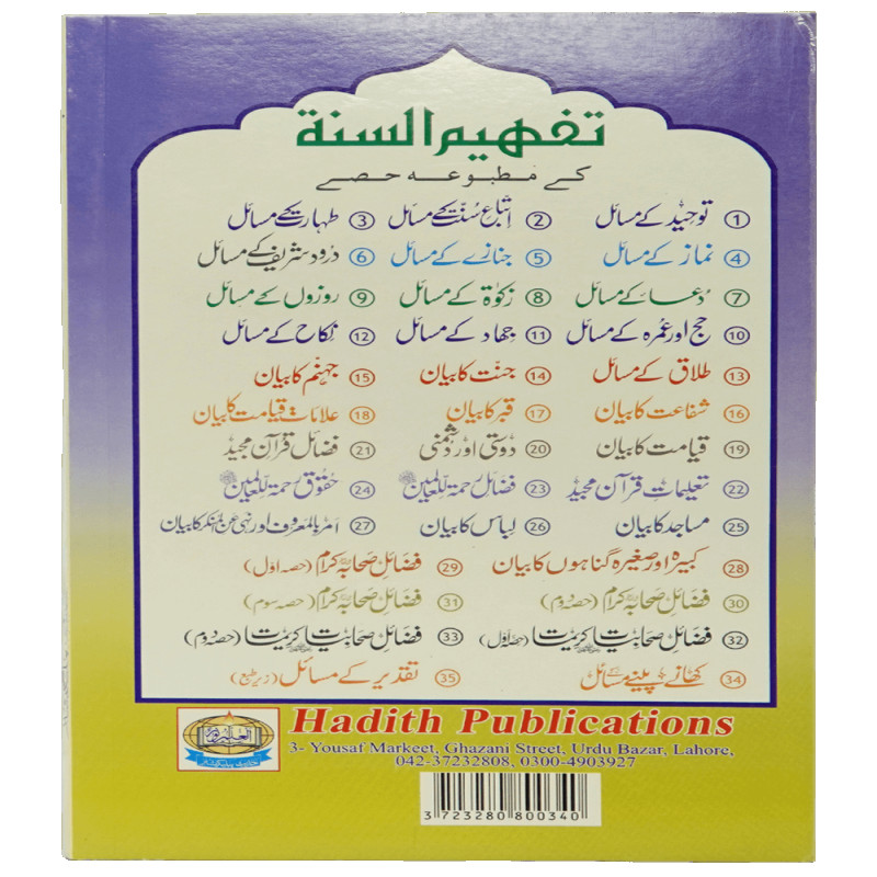 اس کتاب میں کھانے پینے کے آداب، رسول اکرم کے پسندیدہ اور ناپسندیدہ کھانے، کھانا کھلانے کی فضیلت، قربانی، ولیمہ، عقیقہ اور شکار کیے گئے جانور کے مسائل بیان کیے گئے ہیں، نیز حرام اور مشتبہ مأکولات و مشروبات سے بچنے، نیز کھانے پینے میں اسراف کی مذمت کے مسائل احادیث صحیحہ کی روشنی میں بیان کیے گئے ہیں۔ اہل کتاب کے برتن اور کھانوں کے بارے میں شریعت کے احکام واضح کیے گئے ہیں۔
