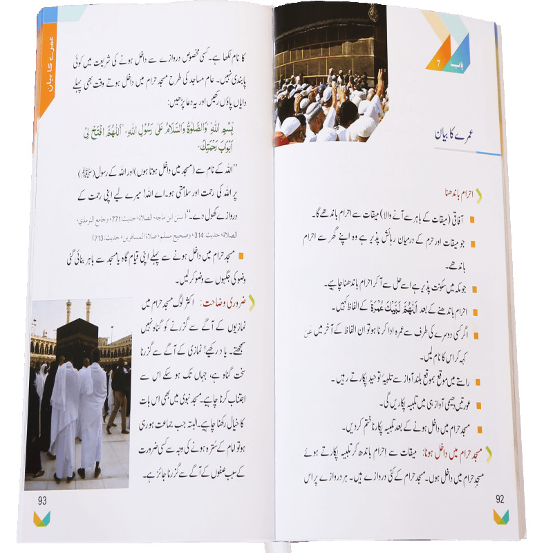 حج بیت اللہ ارکانِ اسلام میں ایک اہم رکن ہے بیت اللہ کی زیارت او رفریضۂ حج کی ادائیگی ہر صاحب ایمان کی تمنا اور آرزو ہے ہر صاحب استطاعت اہل ایمان کے لیے زندگی ایک دفعہ فریضہ حج کی ادائیگی فرض ہے اور اس کے انکار ی کا ایمان کامل نہیں ہے اور وہ دائرہ اسلام سےخارج ہے اجر وثواب کے لحاظ سے یہ رکن بہت زیادہ اہمیت کاحامل ہے تمام كتب حديث وفقہ میں اس کی فضیلت اور احکام ومسائل کے متعلق ابو اب قائم کیے گئے ہیں اور تفصیلی مباحث موجود ہیں ۔حدیث نبویﷺ کہ آپ نےفرمایا الحج المبرور لیس له جزاء إلا الجنة ``حج مبرور کا ثواب جنت سوا کچھ اور نہیں ۔اس موضوع پر اب تک اردو و عربی زبان میں چھوٹی بڑی بیسیوں کتب لکھی جاچکی ہیں زیرنظر کتاب کتب دینیہ کی اشاعت کے عالمی ادار ے دار السلام کی اس سلسلے میں ایک اہم کا وش ہے جس میں حج وعمرہ کے تمام مسائل او ر اس دوران پڑھی جانے والی دعائیں قرآن وحدیث کی روشنی میں جمع کر دی گئی ہیں مزید برآں تمام مقدس مقامات کو نہایت خوبصورت تصویروں او ر نقشوں کے ذریعے بخوبی اجاگر کیا گیا ہے دار السلام کی مرتب کردہ یہ دلکش کتاب خود پڑھنے اور عزیز واقارب دوست احباب کو تحفہ دینے کے لائق ہے تاکہ حج وعمرہ کے فرائض مسنون طریقے سے ادا کیے جاسکیں اللہ تعالی دار السلام کی اس کاوش کو اہل اسلام کے لیے مفید بنائے۔
