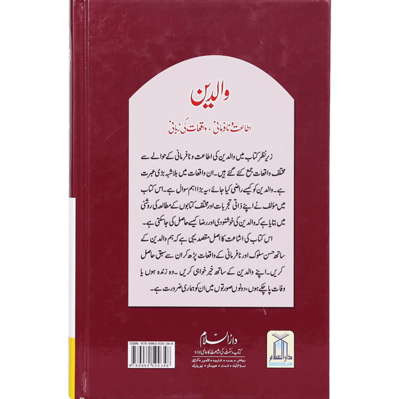 Waaldein is a complete guide for Muslims about how to deal with parents. According to Islamic code of life, one has to treat his/her parents well even if they are Non-Muslims. Those who treat them well and obey their legitimate orders are called obedient while those denying them their rights are disobedient ones. This book has an epic blend of emotional and meaningful real life stories of obedient and disobedient children with practical lessons. The compiler; `Abdul Malik Mujahid` has explained every aspect in his own words to help readers understand well.