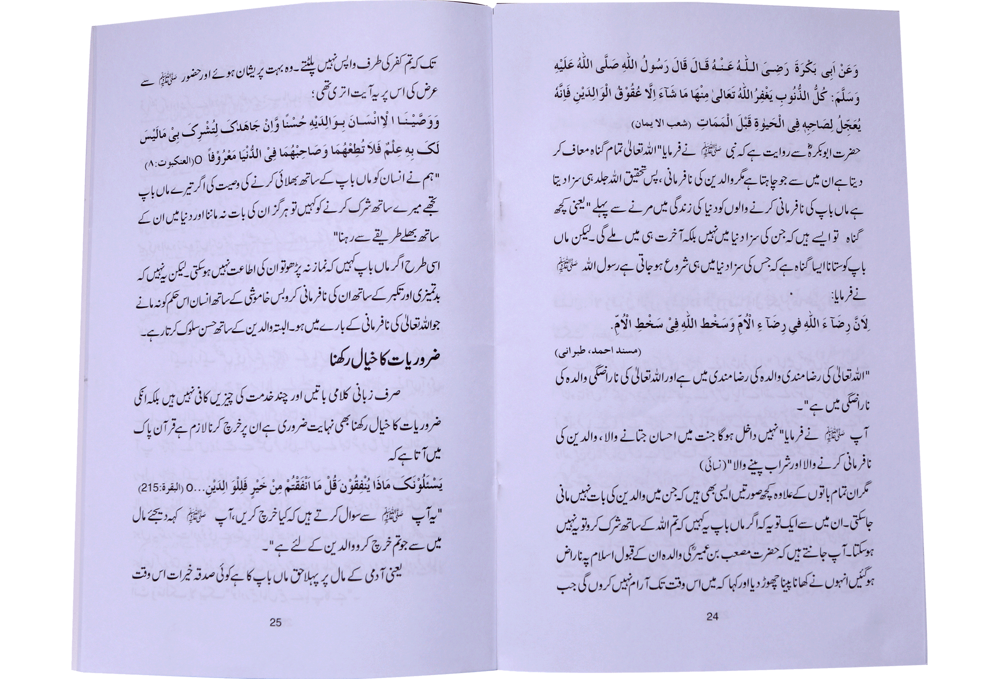 یقینا رسول اللہ ﷺ نے سچ فرمایا۔ انسان پر اللہ تعالیٰ کے حق کے بعد بندوں میں سے سب سے بڑا حق والدین کا حق ہے۔ جس نے والدین کے ساتھ اچھا برتائو کیا وہ دنیا وآخرت کے بھلائیاں سمیٹ گیا اور جس نے ان کو ستایا اس کے لئے دنیا وآخرت کی رسوائیاں ہیں۔ اللہ تعالیٰ ہم سب کو والدین کے ساتھ نیک سلوک کی توفیق دے۔یہ کتابچہ ڈاکٹر فرحت ہاشمی کے آڈیو لیکچر ”والدین ہماری جنت” سے تیار کیا گیا ہے اس لئے عبارت میں تحریر سے زیادہ گفتگو کا انداز غالب ہے۔