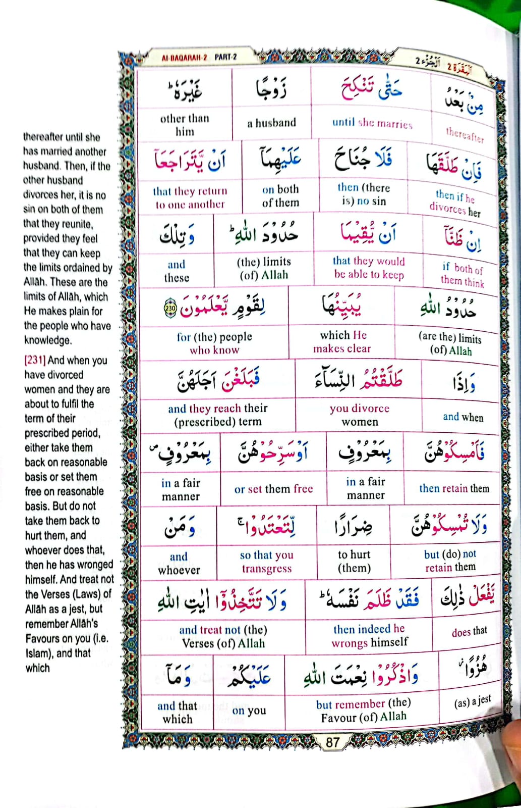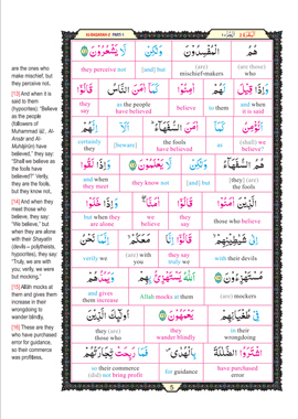 For the first time word for word English translation to increase the awareness of the Arabic verses.