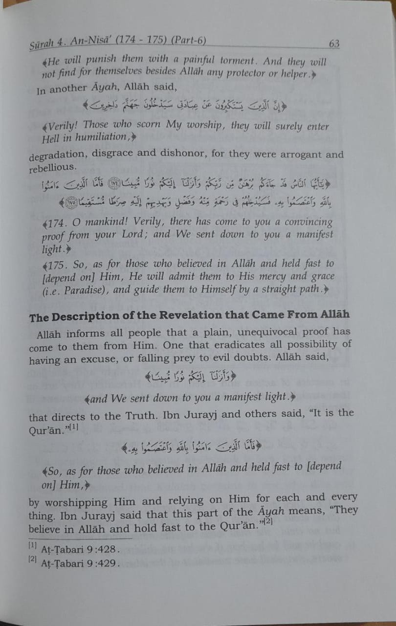 The Qur`an is the revelation of Allah`s Own Words for the guidance of His creatures. Since the Qur`an is the primary source of Islamic teachings, the correct understanding for the Qur`an is necessary for every Muslim. The Tafsir of Ibn Kathir is the most renowned and accepted explanation of the Qur`an in the entire world. In it one finds the best presentation of Ahadith, history, and scholarly commentary. Darussalam is proud to present for the first time this abridged version of Tafsir Ibn Kathir, which is free from unauthentic Ahadith. Volume 1: Parts 1 and 2 (Surat Al-Fatihah to Verse 252 of Surat Al-Baqarah) Volume 2: Parts 3, 4 & 5 (Surah Al-Baqarah, V. 253 to Surat An-Nisa, V. 147) Volume 3: Parts 6, 7 & 8 (Surat An-Nisa, V. 148 to the end of Surat Al-An`am) Volume 4: Parts 8 to 11 (Surat Al-A`raf to the end of Surah Yunus) Volume 5: Parts 11 to 15 (Surah Hud to Surat Al-Isra` Verse 38) Volume 6: Parts 15 to 18 (Surat Al-Isra`, Verse 39 to the end of Surat Al-Mu`minun) Volume 7: Parts 18 to 22 (Surat An-Nur to Surat Al-Ahzab, Verse 50) Volume 8: Parts 22 to 25 (Surat Al-Ahzab Verse 51 to Surat Ad-Dukhan) Volume 9: Parts 25 to 28 (Surat Al-Jathiyah to Surat Al-Munafiqun) Volume 10: Parts 28 to 30 (Surat At-Tagabun to end of the Quran)