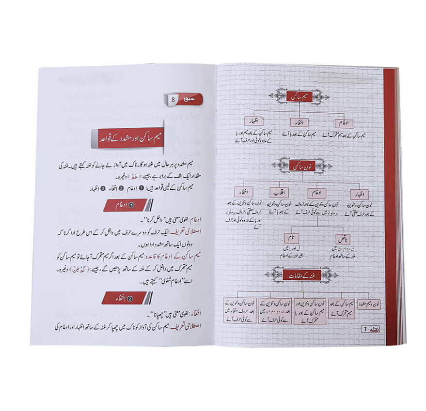 اس کتاب میں بہت آسان انداز میں تجویدی قواعد کو مثالوں کے ساتھ لکھا گیا ہے،قواعد کی پختگی کے لیے سبق کے بعد مشقوں کا اہتمام کیا گیا ہے۔ سبق کو اجمالی طور پر سمجھنے اور یاد کرنے کے لیے اہم اسباق سے پہلے ان کے نقشے دیے گئے ہیں۔ یہ اسلوب عوام و خواص دونوں کے لیے یکساں مفید ہے۔ اللہ تعالیٰ ہمیں صحیح تلاوات کرنے، صحیح سمجھنے اور اس کے مطابق زندگی گذارنے کی توفیق عطا فرمائے۔ آمین۔